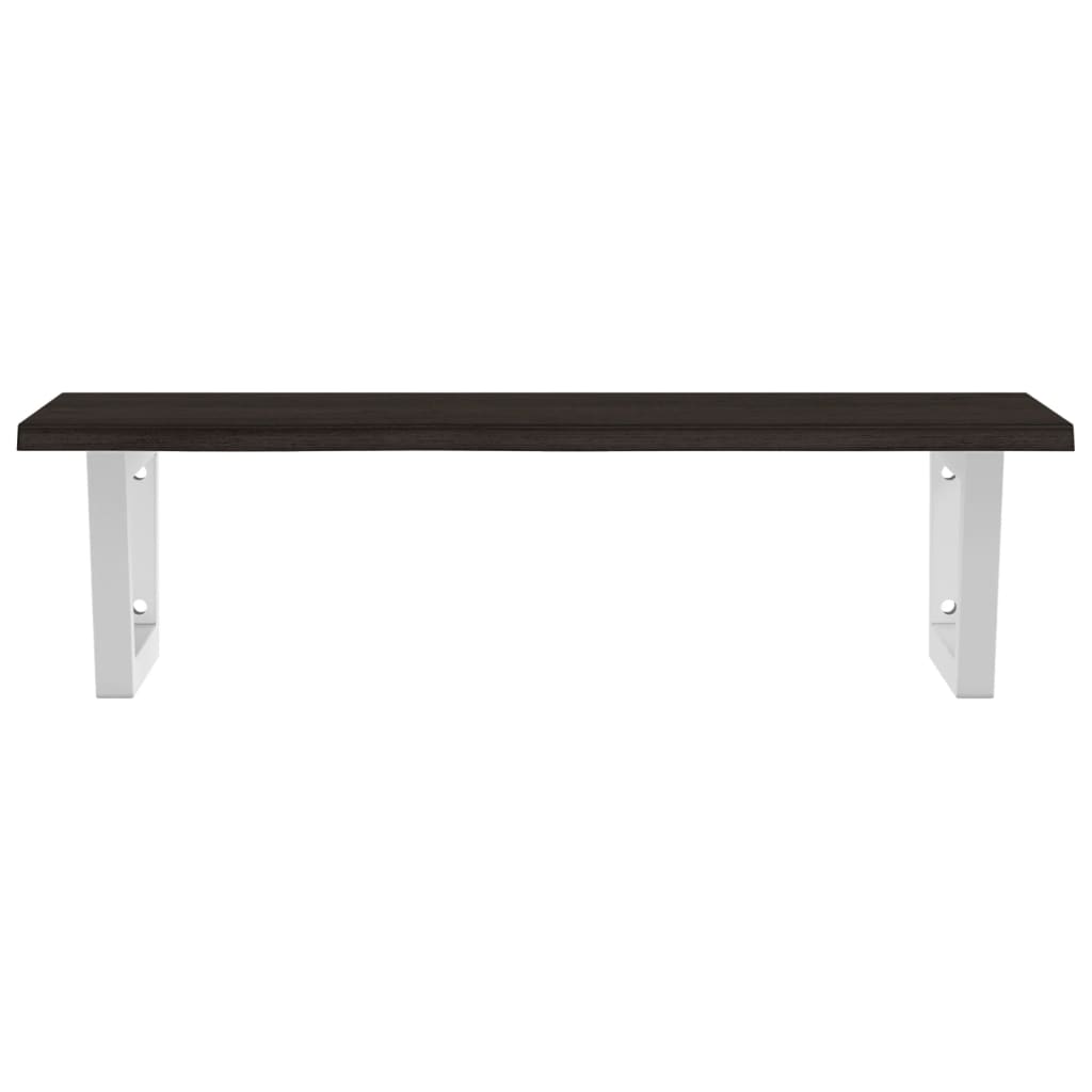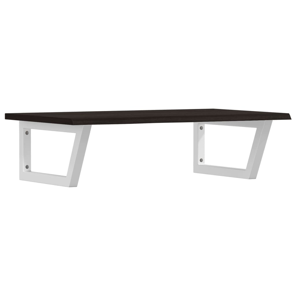 Das Regal lässt sich sicher an der Wand befestigen und bietet eine elegante und platzsparende Lösung für dein Badezimmer. Robust und langlebig: Diese Waschtisch-Platte hat Stahlhalterungen und eine Eichenholz-Platte, wodurch sie robust, stabil und langlebig ist.Platzsparend: Das Schweberegal bietet reichlich Platz für Cremes und Kleinigkeiten. Dank der Trapezform der Halterungen lassen sich auch Handtücher oder andere Sachen platzsparend darauf aufhängen.Einfache Verwendung: Die Holzplatte ist nicht vorgebohrt, sodass dein Waschbecken je nach Bedarf links, rechts oder in der Mitte angebracht werden kann. Dank der vorgebohrten Löcher in der Halterung lässt sich die Ablage am Waschtisch oder an der Wand mühelos befestigen.Vielseitig einsetzbar: Dank ihres modernen Designs schafft die Ablage zusätzlichen Stauraum und fügt sich harmonisch in die unterschiedlichsten Einrichtungen ein. Gut zu wissen:Die Schrauben sind nicht im Lieferumfang enthalten. Du kannst die Schrauben anhand von den folgenden Informationen separat erwerben.Wandbefestigung: 2 x M8-Dehnschraube pro HalterungHolzplatte: 2 x M5x18-Schraube (T=2) oder 2 x M5x20-Schraube (T=2,5/4 cm) pro HalterungAls Naturprodukt kann Holz Aststellen und Unebenheiten aufweisen, die wir mit schwarzer Füllung ausfüllen, um ein glattes Aussehen zu gewährleisten.