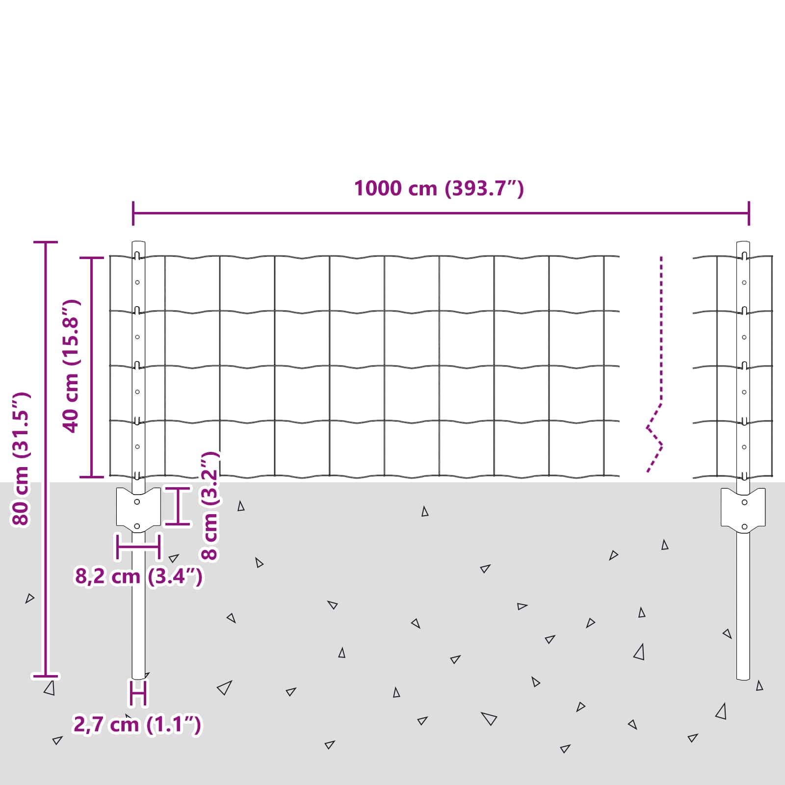 Zaun und Pfosten Silber 0,4 x 10 m Stahl