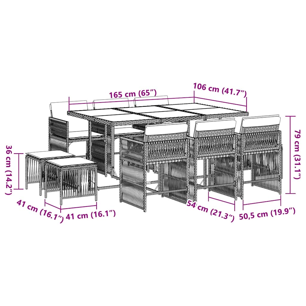11-tlg. Garten-Essgruppe mit Kissen Schwarz Poly Rattan