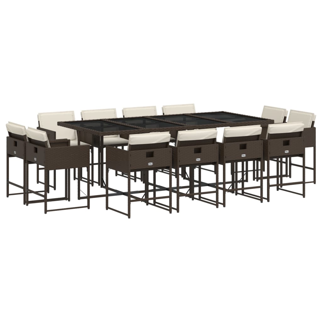 13-tlg. Garten-Essgruppe mit Kissen Braun Poly Rattan