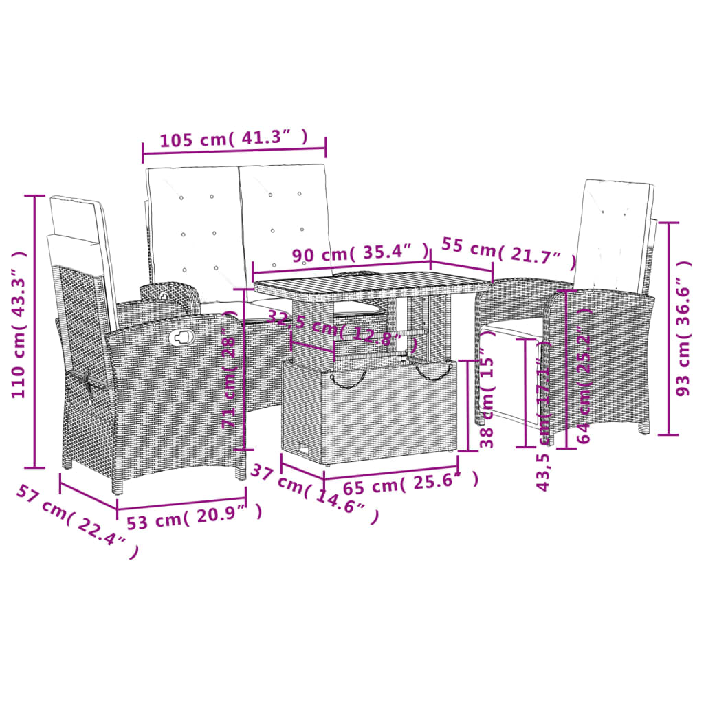 4-tlg. Garten-Essgruppe mit Kissen Beige Poly Rattan
