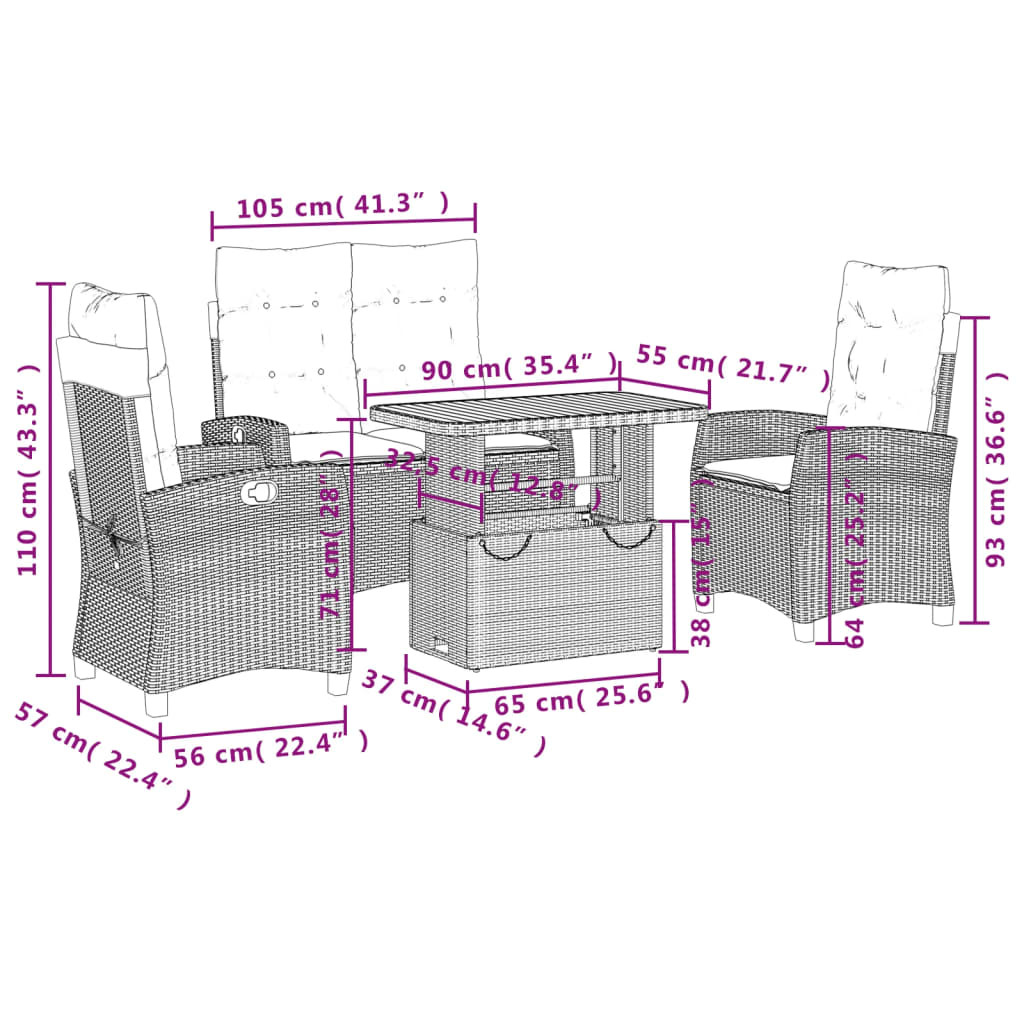 4-tlg. Garten-Essgruppe mit Kissen Schwarz Poly Rattan