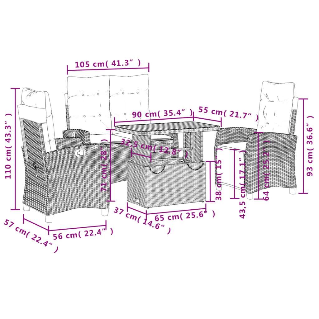 4-tlg. Garten-Essgruppe mit Kissen Schwarz Poly Rattan