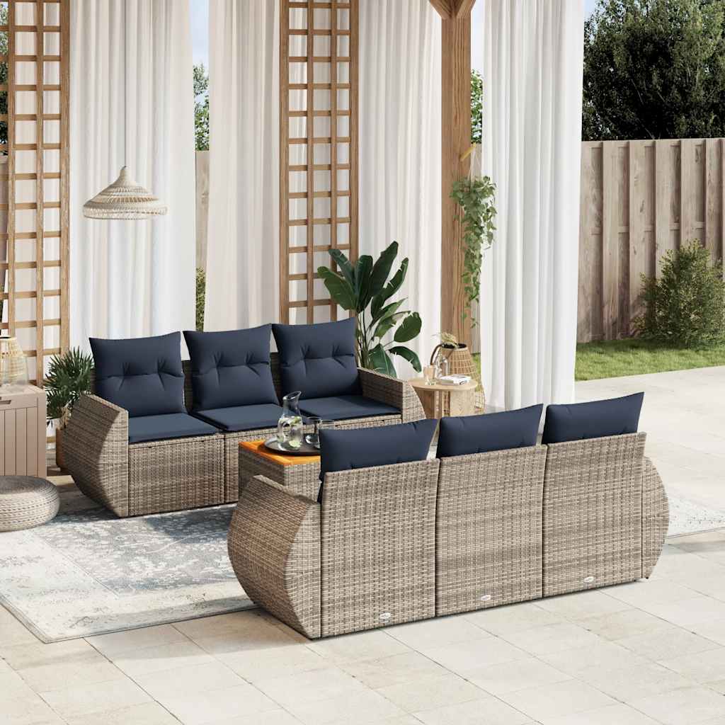 Dieses Gartensofa-Set ist die perfekte Ergänzung für Ihren Garten, Ihre Terrasse oder Ihren Innenhof und bietet einen komfortablen und einladenden Platz zum Plaudern mit Familie und Freunden oder einfach zum Entspannen und Genießen der Natur. Langlebiges Material: PE-Rattan, auch bekannt als Polyrattan, ist ein robustes, pflegeleichtes Kunststoffmaterial, das wie natürliches Rattan aussieht. Es ist leicht, einfach zu reinigen und wird aufgrund seiner Langlebigkeit und Wetterbeständigkeit häufig für Gartenmöbel verwendet.Stabile und leicht zu reinigende Tischplatte: Dieser Gartentisch hat eine Tischplatte aus Akazienholz, die robust, langlebig und mit einem feuchten Tuch leicht zu reinigen ist. Bequemes Sitzerlebnis: Diese Gartenmöbel mit dick gepolsterten Kissen bieten ein bequemes Sitzerlebnis.Abnehmbarer und waschbarer Bezug: Diese Sitzkissen verfügen über abnehmbare Bezüge zum einfachen Waschen und Pflegen.Modulares Design: Dieses Gartenmöbelset ist modular aufgebaut und daher völlig flexibel und leicht zu bewegen, sodass Sie eine individuelle Gartenmöbelanordnung erstellen können. Gut zu wissen:Damit Ihre Gartenmöbel schön bleiben, empfehlen wir Ihnen, sie mit einer wasserdichten Abdeckung zu schützen.