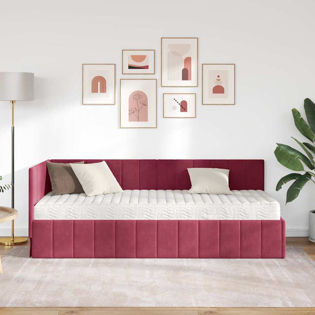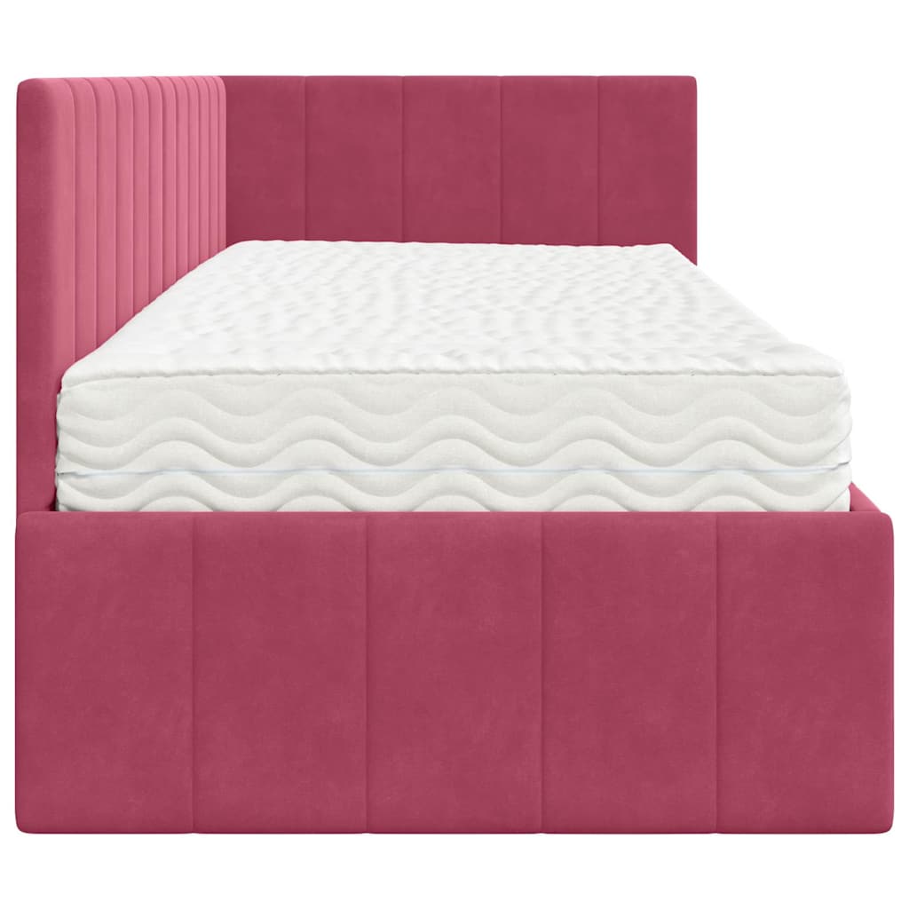 Eckbettgestell mit Matratze Weinrot 80 x 200 cm Samt
