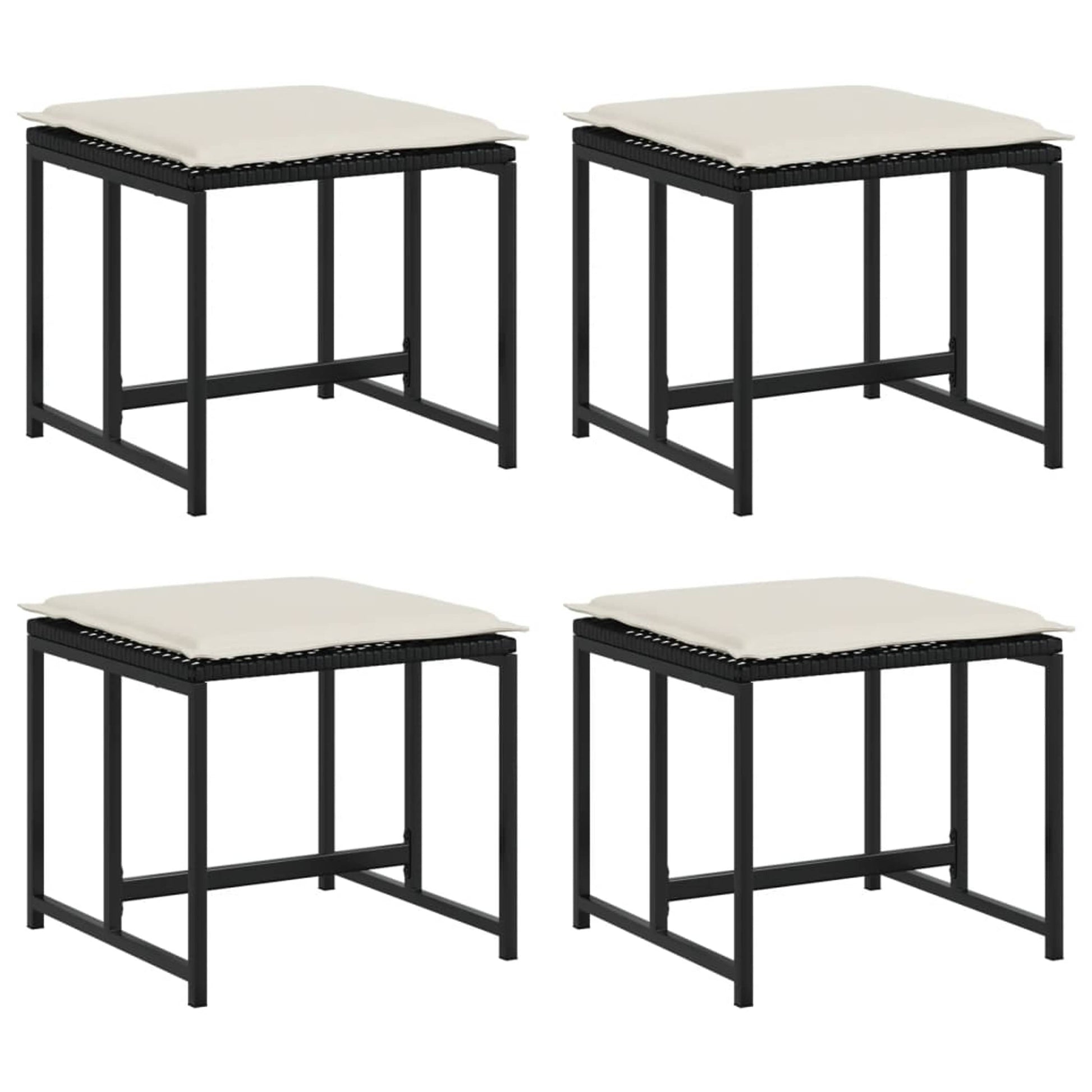 Gartenhocker mit Kissen 4 Stk. Schwarz Poly Rattan