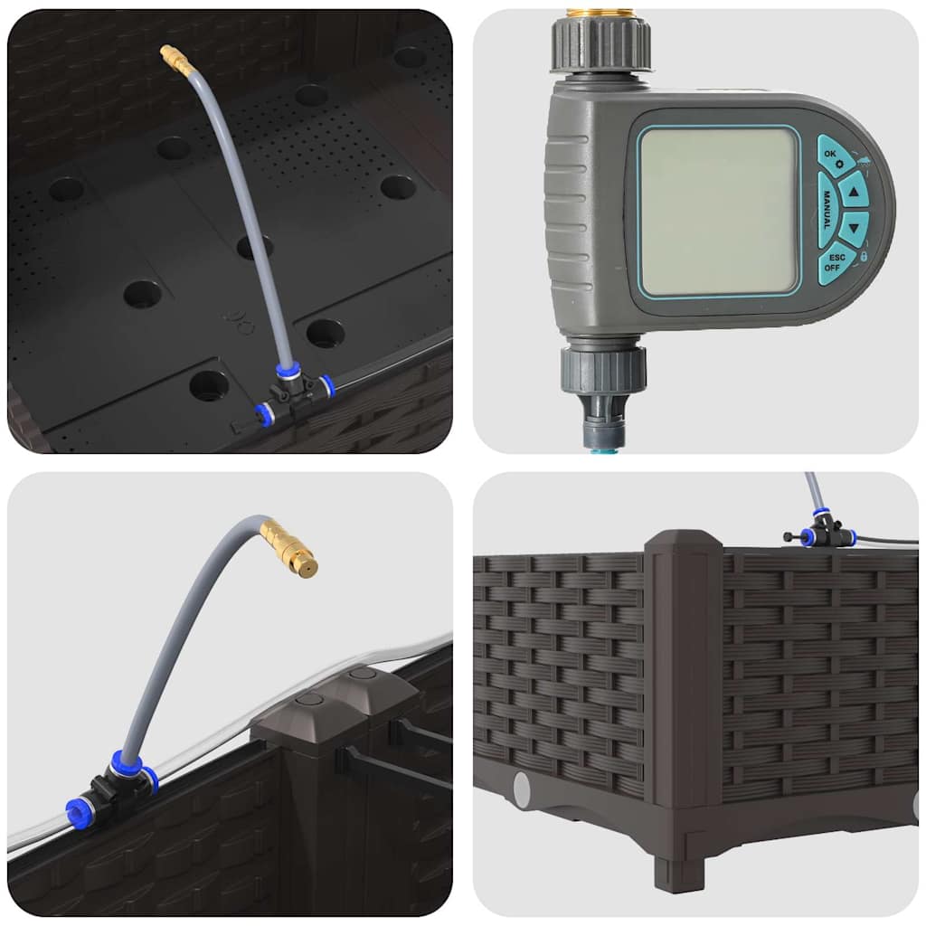 Dieser Gartenpflanzer mit Bewässerung ist eine moderne Lösung, die für Outdoor-Enthusiasten entwickelt wurde. Seine schlanke rechteckige Form, kombiniert mit einem strukturierten Geflechtmuster, verleiht deinem Garten oder Terrassenbereich einen zeitgenössischen Touch. Ideal für das Pflanzen einer Vielzahl von Flora, bietet dieser Pflanzer eine solide, ästhetisch ansprechende Grundlage für deine gärtnerischen Ambitionen. Er fügt sich nahtlos in jede Garten-Dekoration ein und bietet eine funktionale, aber stilvolle Option für Hobbygärtner. Der Pflanzer ist perfekt für alle, die ihren Außenbereich mit üppigem Grün bereichern wollen, unterstützt durch ein innovatives Bewässerungssystem, das ein gesundes Pflanzenwachstum fördert. Sein erhöhtes Design verleiht eine anspruchsvolle Note und sorgt gleichzeitig für praktische Verwendung, was dieses Stück zu einer unverzichtbaren Ergänzung für Gartenliebhaber macht. Materialkonstruktion: Der Gartenpflanzer besteht aus UV-beständigem Stahl, der Haltbarkeit und Widerstandsfähigkeit gegen Wetterveränderungen gewährleistet. Diese Materialwahl bietet robusten Schutz, der starkem Sonnenlichteinfluss und saisonalen Veränderungen angemessen widersteht, sodass deine Pflanzen das ganze Jahr über ohne Kompromisse beim strukturellen Integrität gedeihen. Eingebautes Bewässerungssystem: Ausgestattet mit einem fortschrittlichen Bewässerungssystem, nimmt dieser Gartenpflanzer das Rätselraten beim Gießen. Durch das nutzen von eingebauten Kanälen verteilt er Wasser effizient direkt zu den Pflanzenwurzeln, sodass diese ausreichende Feuchtigkeit erhalten, während der Wasserverbrauch reduziert wird und gesünderes Wachstum gefördert wird. Modernes Design: Mit einem schicken Geflechtmuster zeigt dieser Pflanzer elegante Einfachheit, die mit der modernen Ästhetik übereinstimmt. Seine nicht reflektierende matte Oberfläche verleiht einen verfeinerten Touch, sodass er sich nahtlos in verschiedene Außenbereiche integriert, während er mit seinen klaren, unaufdringlichen Linien den zeitgenössischen Stil verkörpert. Vielseitige Nutzung: Ideal für den Außeneinsatz, dient dieser Pflanzer sowohl dekorativen als auch praktischen Zwecken. Sein geräumiges Inneres bietet Platz für eine Vielzahl von Pflanzenarten, von üppigen Farnen bis hin zu lebhaften Blumen, was ihn für saisonale Übergänge oder den ganzjährigen Gebrauch geeignet macht und ein optimales Pflanzerlebnis für Hobbyisten und erfahrene Gärtner bietet. Pflege & Wartung: Um sein makelloses Erscheinungsbild zu bewahren, stelle diesen Pflanzer an einen stabilen Ort und vermeide direkte Sonneneinstrahlung über längere Zeiträume. Reinige regelmäßig mit einem trockenen Tuch und achte darauf, dass die Verbindungen während der Montage gesichert sind, um Stabilität und ästhetischen Wert über die Zeit zu gewährleisten.