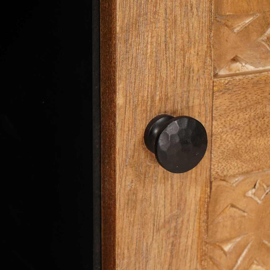 Dieses schicke Holzsideboard bringt Stil und Funktionalität perfekt zusammen und ist eine tolle Bereicherung für jedes moderne Zuhause. Hauptsächlich aus massivem Mangoholz gefertigt, steht es für Stärke und Zuverlässigkeit und eignet sich klasse zur Aufbewahrung deiner Wohnzimmerutensilien. Mit seinem minimalistischen Design, klaren Linien und bündigen Türen vermittelt es ein zeitgemäßes Flair, das zu jeder Einrichtung passt. Die geräumigen Fächer und der solide Rahmen sorgen nicht nur für Langlebigkeit, sondern setzen auch einen stilvollen Akzent in deinem Raum. Egal, ob du Geschirr verstauen oder Deko-Elemente präsentieren möchtest, es bietet sowohl praktische als auch schicke Lösungen. Materialien: Hergestellt aus massivem Mangoholz und Holzwerkstoff für eine robuste Struktur, die den täglichen Gebrauch aushält. Die warme Textur des Mangoholzes bringt Charakter und steht im schönen Kontrast zur eleganten Oberfläche des Holzwerkstoffs. Inklusive Komponenten: Ausgestattet mit praktischen Knöpfen und bündigen Türen für einen einfachen Zugang. Das Post-Bein-Design sorgt für starken Halt und bietet gleichzeitig einen klassischen, unaufdringlichen Look. Funktionen / Nutzung / Design: Dieses Sideboard bietet viel Stauraum mit seinen geräumigen Fächern, die es einfach machen, alles ordentlich zu halten. Seine rechteckige Form ist perfekt, um an Wänden oder in Ecken platziert zu werden, was es zu einem Blickfang macht, ohne zu übertreiben. Empfohlene Verwendung: Perfekt für Wohnzimmer, ist dieses funktionale Design super, um Geschirr oder Deko-Gegenstände zu lagern und fügt sich nahtlos in moderne und minimalistische Innenräume ein. Es kann leere Räume in ordentliche, stylische Bereiche verwandeln. Pflege & Wartung: Du brauchst zwei Personen und einen Schraubendreher zum Zusammenbauen. Danach hältst du es einfach sauber, indem du es mit einem trockenen Tuch abwischst. Vermeide aggressive Chemikalien, um die Lebensdauer zu verlängern und dieses tolle Teil Teil deiner Einrichtung zu behalten.