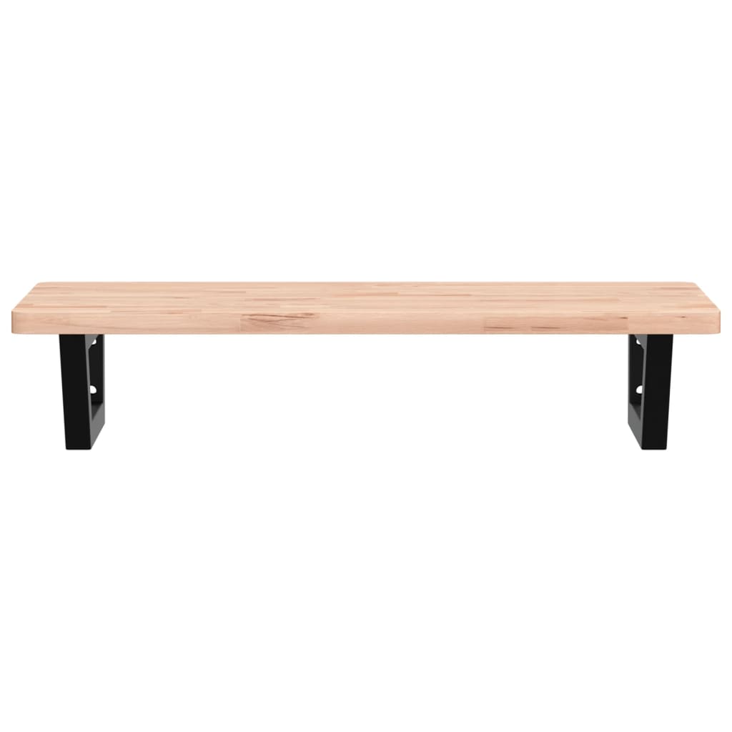 Die Waschtischplatte wird sicher an der Wand befestigt und bietet eine elegante und platzsparende Lösung für dein Badezimmer. Robust und langlebig: Dieses Waschbeckenregal besteht aus einem Stahlgestell und einer Oberplatte aus massivem Buchenholz, was es robust, stabil und langlebig macht. Platzsparend: Die schwebende Waschtischplatte bietet reichlich Platz für das Waschbecken, Seifen, Cremes sowie andere Kleinigkeiten. Dank der Trapezform kannst du Handtücher oder andere Dinge platzsparend an der Halterung aufhängen. Einfache Verwendung: Die Holzplatte ist nicht vorgebohrt, so dass dein Waschbecken je nach Bedarf links, rechts oder mittig installiert werden kann. Dank der vorgebohrten Löcher in der Halterung kann diese einfach mit der Tischplatte montiert und an der Wand befestigt werden. Vielseitige Anwendungsmöglichkeiten: Dank ihres modernen Designs fügt sie sich in verschiedene Arten von Bädern ein. Gut zu wissen:Die Schrauben sind nicht im Lieferumfang enthalten. Du kannst die Schrauben auf der Grundlage der unten aufgeführten Informationen separat erwerben. Wandbefestigung: 2 Stück M8-Dehnschrauben pro Halterung Holzplatte: 2 Stück M5x18-Schrauben (T=2) oder 2 Stück M5x20-Schrauben (T=2,5/4 cm) pro Halterung