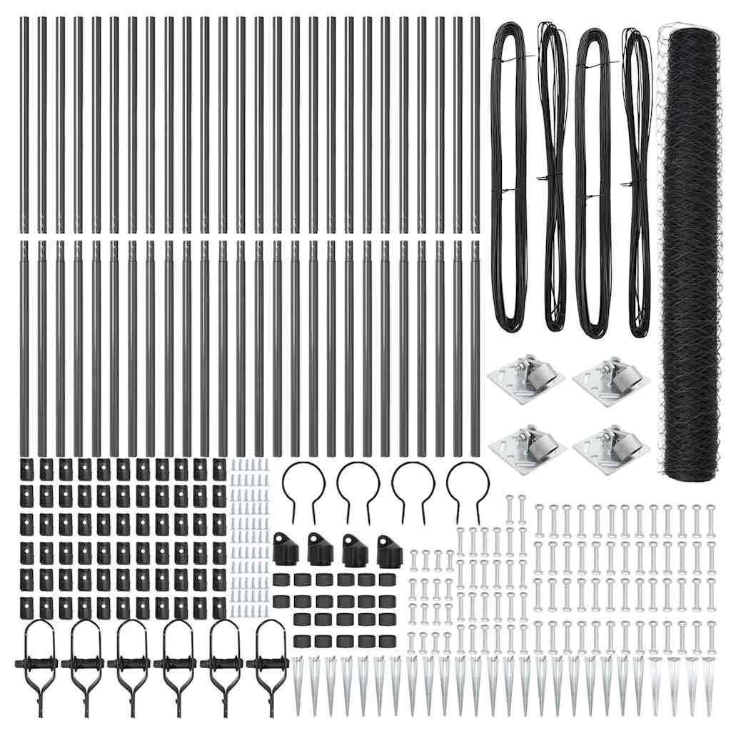 Zaun mit Pfosten Grau 1,4 x 50 m PVC-beschichteter Stahl