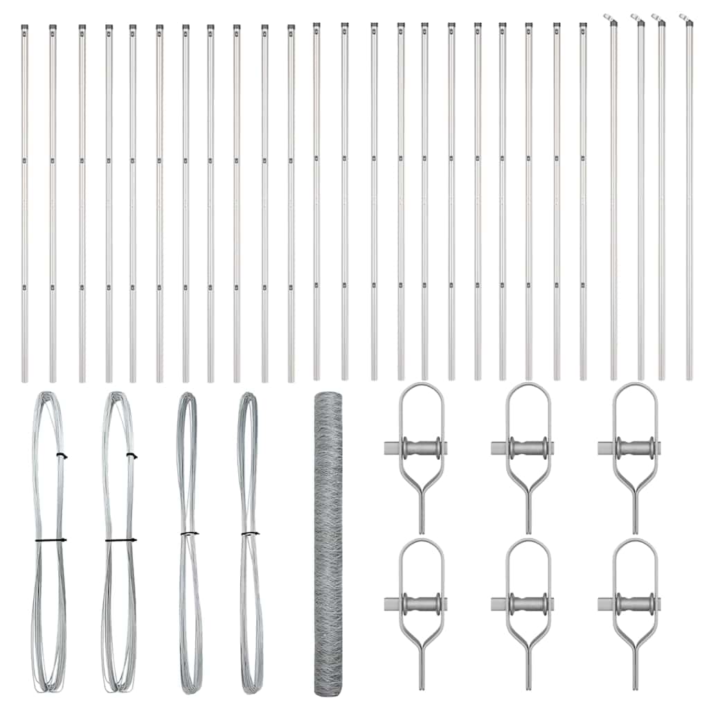 Zaun mit Pfosten Silber 1,6 x 50 m PVC-beschichteter Stahl