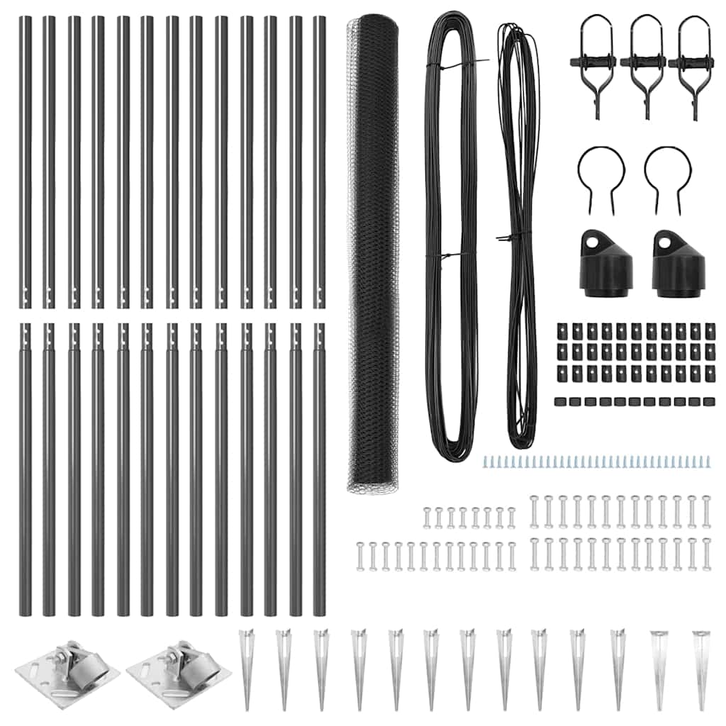 Zaun mit Pfosten Grau 1,5 x 25 m PVC-beschichteter Stahl